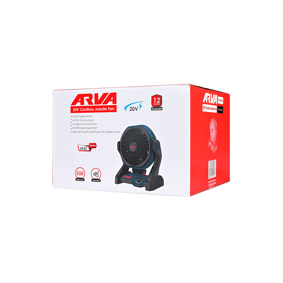 ولتاژ: ۲۰ ولت سرعت بی باری: ۱۴۰۰ – ۱۵۵۰ – ۱۷۰۰ دور بر دقیقه حداکثر سرعت باد: ۳.۸ متر بر ثانیه قابلیت تنظیم زاویه: ۴۵ تا ۱۸۰ درجه مدت گارانتی: ۱۲ ماه متعلقات: شارژر، باتری ۲۰ ولتی لیتیوم یونی ۴ آمپر ساعتی و آداپتور AC/DC موتور ۱۰۰% مسی با قابلیت طول عمر بیشتر و راندمان بالاتر طراحی سبک برای راحتی و آزادی عمل با قابلیت حمل و تحرک بالا در هر مکانی قابلیت تنظیم سرعت هوا دارای آداپتور دو منظوره AC/DC جهت استفاده در دو حالت برقی و شارژی رابط USB برای شارژ تلفن همراه دارای نشان و استاندارد CE و GS
