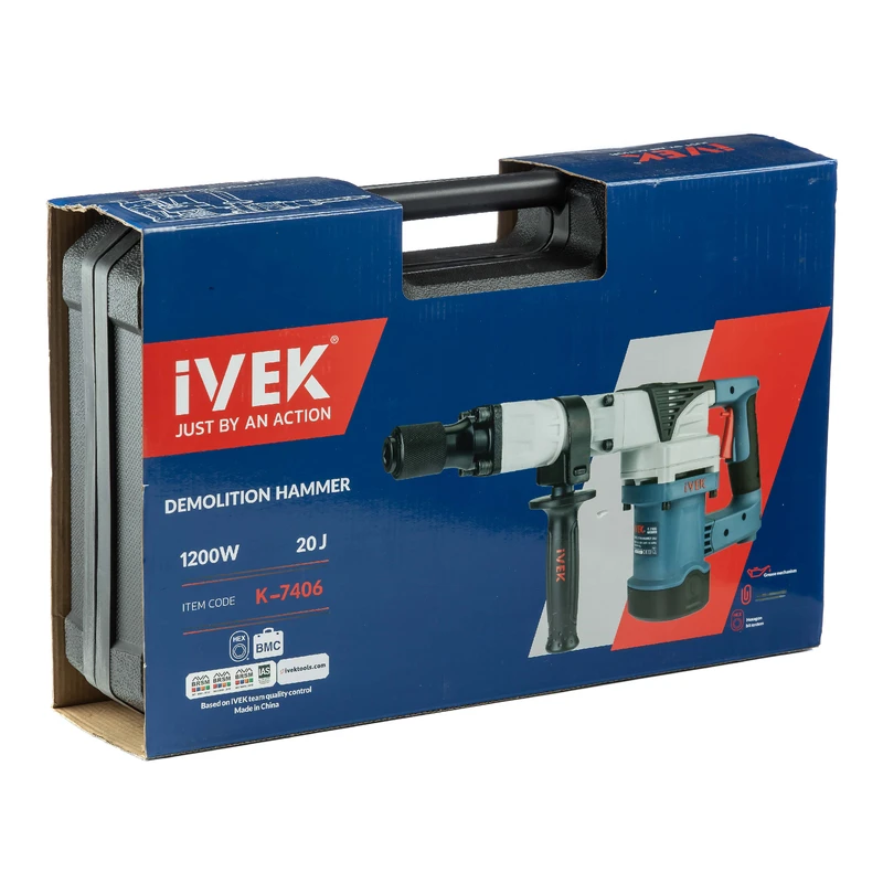 مجهز به موتور قدرتمند با توان ۱۲۰۰ وات و توان ضربه ۲۰ ژول با قابلیت تخریب حداکثری مجهز به سیستم قلم گیر شش گوش (HEX۱۷) و درپوش تعویض گریس مجهز به گیربکس صنعتی جهت اثربخشی هرچه بیش تر به همراه دو عدد قلم شش گوش نوک پهن و نوک تیز مجهز به سیستم کنترل لرزش به همراه گریس و یک جفت ذغال اضافه دارای دسته گردان ۳۶۰ درجه دارای کیف BMC اقلام همراه: دو قلم HEX (ششگوش) نوک تیز و تخت / یک تیوب گریس / یک جفت ذغال اضافی / آچار ال / آچار مخصوص درپوش محفظه گریس / کیف BMC / دفترچه راهنما / کارت گارانتی