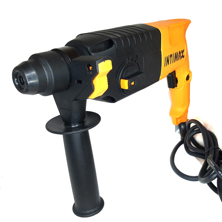 ریل بتن کن سه کاره اینتیمکس مدل IT-0326 اینتیمکس یکی از تولیدکنندگان ابزار آلات صنعتی است ، که در طی سالیان اخیر فعالیت خود را آغاز نموده و در همین مدت کوتاه جایی خود را در بازار باز کرده ، این افتخار با تولید محصولات با کیفیت و مقرون به صرفه میسر شده است . محصول فوق یکی از تولیدات شرکت INTIMAX بوده و برای افرادی که میخواهند یک دریل بتن کن سبک داشته باشند مناسب است. این دستگاه در مقایسه با بسیاری از دریلهای چکشی از قدرت تخریب و سوراخکاری بیشتری روی سطوح سیمانی و گچی برخوردار است. توان مصرفی این محصول 3200 وات است. دریل بتن کن اینتیمکس مدل 0326 یک دریل سه کاره که قابلیت سوراخکاری، سوراخکاری چکشی و تخریب دارد. این دریل دارای سه نظام ابزار گیر چهارشیار مجهز شده است و همراه با کیف , مته و قلم به بازار عرصه می شود. اگرچه این دستگاه سرعت چرخش بالایی ندارد اما به لطف نرخ ضربهی مناسبی که دارد قادر است بهخوبی سطوح ساخته شده از مصالح ساختمانی را سوراخ کند. نرخ ضربهی این محصول بازهای برابر 0 تا 3500 ضربه بر دقیقه است. از دیگر ویژگیهای این محصول میتوان به قابلیت چرخش آن در دو جهت راستگرد و چپگرد اشاره کرد که موجب شده بتوان هر دو نوع مته راستگرد و چپگرد را روی دستگاه نصب کرد. این دریل میتواند در هر ضربه انرژی معادل 2.7 ژول را بر سطح وارد کند.
