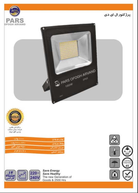 یکی از محصولات شرکت پارس افق اروند، پروژکتورهای کم مصرف 100 وات (SMD) است که جهت روشنایی محیط غیر مسقف و تحت شرایط متغیر جوی مناسب می باشد. در ساختمان داخلی این پروژکتور از لامپ LED/SMD استفاده شده است . SURFACE MOUNTED DEVICE) SMD) نوعی تکنولوژی ساخت برای قطعاتی است که به صورت سطحی نصب میشود که در آن تعداد زیادی LED روی یک صفحه قرار می گیرند و باعث تابش نور بصورت یکنواخت می شوند در نتیجه سبب ایجاد خیرگی در چشم نمی شوند همچنین باعث کاهش تولید گرما و صرفه جویی در مصرف انرژِی نیز میشوند.این پروژکتور دارای قدرت نوردهی بالا و مصرف فوق العاده کم است. میزان نوردهی این پروژکتور، 9000 لومن اندازه گیری شده است.