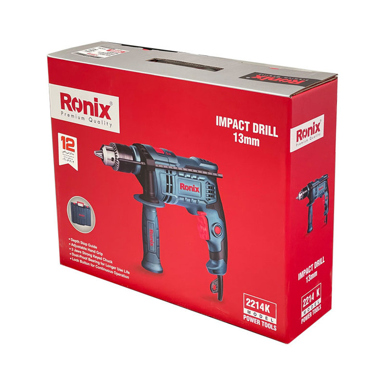 کیت دریل چکشی 2214K رونیکس، مجهز به موتور قدرتمند 750 وات است و استقامت بالایی را در شرایط پرفشار و فعالیتهای سنگین صنعتی نشان میدهد. سه نظام آچاری 13 میلیمتری این دریل، تمام فلزی و بسیار مقاوم ساخته شده و کار بر روی سطوح بسیار سخت و متراکم را امکانپذیر میکند. این سهنظام قدرتمند، مته را محکم سر جای خود نگهمیدارد و بدون کمترین انحراف، با سرعت به گردش درمیآورد.