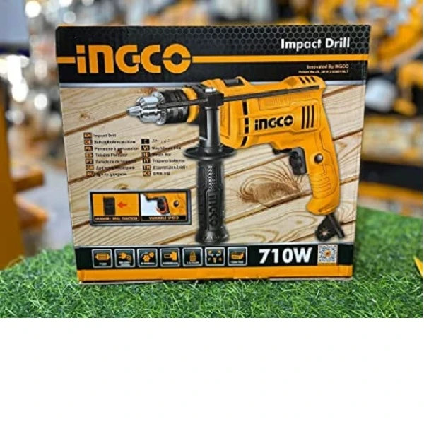 دریل چکشی 710 وات اینکو مدل ID7108 ، این دریل چکشی اینکو برند که در کشور چین تولید می شود. قابلیت چکشی دریل یکی از ویژگی های مهم این نوع دریل هاست. در حالت چکشی، دستگاه دریل میتواند ضرباتی منظم را بر سطح وارد آورد. این ویژگی در سوراخ کردن سطوحی ساخته شده از مصالح ساختمانی مانند گچ و سیمان بسیار کارگشا بوده و فرایند سوراخکاری را سرعت میبخشد. سرعت چرخش و قابلیت کنترل آن یکی از ویژگیهایی مهم در انتخاب دریل است. شرکت اینکو این محصول را به شکلی طراحی کرده که کاربر میتواند سرعت چرخش آن را کنترل کند. برای این منظور یکی شستی دیمردار روی دستگاه قرار گرفته است. حداکثر سرعت چرخش این دستگاه مقداری برابر 3000 دور بر دقیقه است. با وجود این قابلیت کاربر میتواند با سرعت کم چرخش دستگاه، نشانهگذاری مته را انجام دهد. همچنین وجود قفل سوییچ در این دستگاه موجب شده تا کاربر بتواند بدون نیاز به نگه داشتن شستی دستگاه با تمرکز بیشتری سطح را سوراخ کند. این قفل در کنار شستی دستگاه قرار گرفته است سیستم گردش دریل چکشی 710 وات اینکو مدل ID7108 بهصورت راستگرد و چپگرد طراحی شده است. این ویژگی موجب میشود تا کاربر بتواند از هر دونوع متهی راستگرد و چپگرد روی دستگاه استفاده کند. از دیگر مزایای این ویژگی میتوان به خارج کردن مته از سطح با حرکت معکوس دریل اشاره کرد. از آنجایی که این دستگاه بهصورت چکشی نیز مورد استفاده قرار میگیرد به یک دستهی کمکی مجهز شده است. این دسته از قابلیت چرخش 360 درجه برخوردار بوده و با کمک آن کاربر میتواند با تسلط بیشتری کار کند. برای چرخش دستهی کمکی حول بدنهی دستگاه کافی است آن را بپیچانید تا کمی آزاد شده و سپس در زاویهی دلخواه قرار دهید. در قسمت بالایی دسته همجنین محل قرار دادن خطکش تعبیه شده است. انتهای دستهی کمکی نیز بهشکلی طراحی شده که کاربر میتواند در فضای خالی آن مته قرار دهد. دریل چکشی 710 وات اینکو (INGCO) دارای دو حالت سوراخکاری و سوراخکاری چکشی نیروی خود را از طریق برق شهری تامین میکند. بیشینه سرعت دوران این دریل از 0 تا 3000 دور بر دقیقه است و دارای دیمر کنترل سرعت 12 حالته است.این دریل اینکو توانایی چرخش در دو جهت را دارد. این دستگاه توانایی سوراخکاری در چوب، فولاد و بتن را دارد