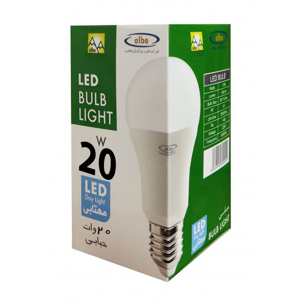 یکی از محصولات شرکت البو لامپ های ال ای دی 20وات حبابی می باشند که جایگزین مناسبی برای لامپ های رشته ای قدیمی نیز هستند. در تولید محصولات البو گازهای سرطانزای فلورسنت و جیوه بکار نرفته است.لامپ های ال ای دی البو با پخش نور کاملا یکنواخت محیطی آرامش بخش و جذاب را برای شما به ارمغان می آورد. از دیگر ویژگی های منحصر بفرد محصولات البو میتوان به استفاده از یک نوع کامپوزیت منعطف و شفاف و آلومینیوم دایکاست در ساخت آن اشاره کرد که در مقابل ضربه و فشار مقاومت بسیار بالایی دارند و خرد نشده و نمی شکنند و این مورد خود دلیلی بر طول عمر و مصرف آسانتر از این کالاست. همچنین لامپ های البو قابلیت نصب بر روی سرپیچ های استاندارد را دارند و به محض روشن شدن تمام توانایی خود را به نمایش می گذارند.