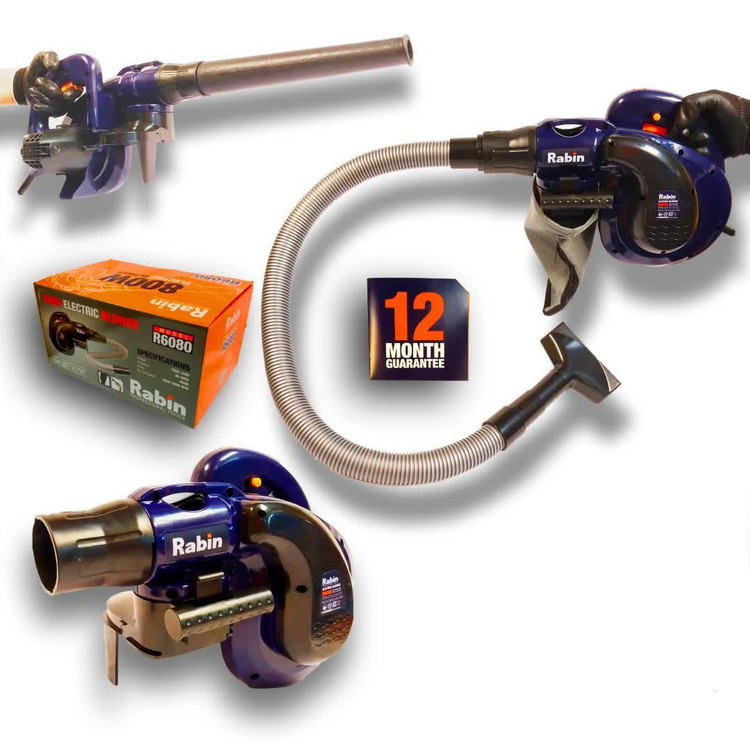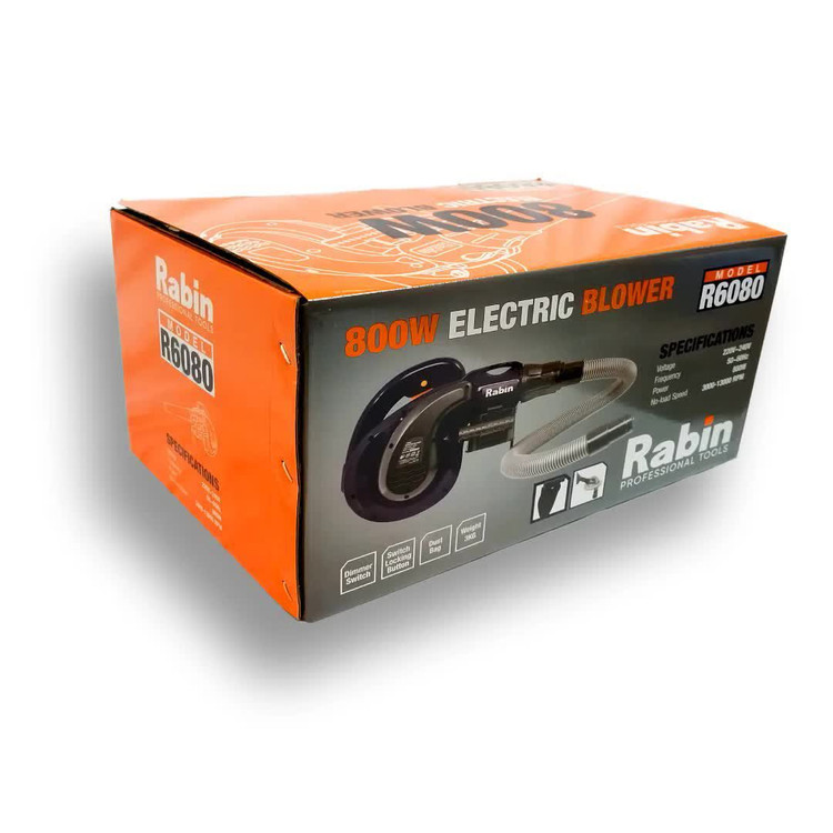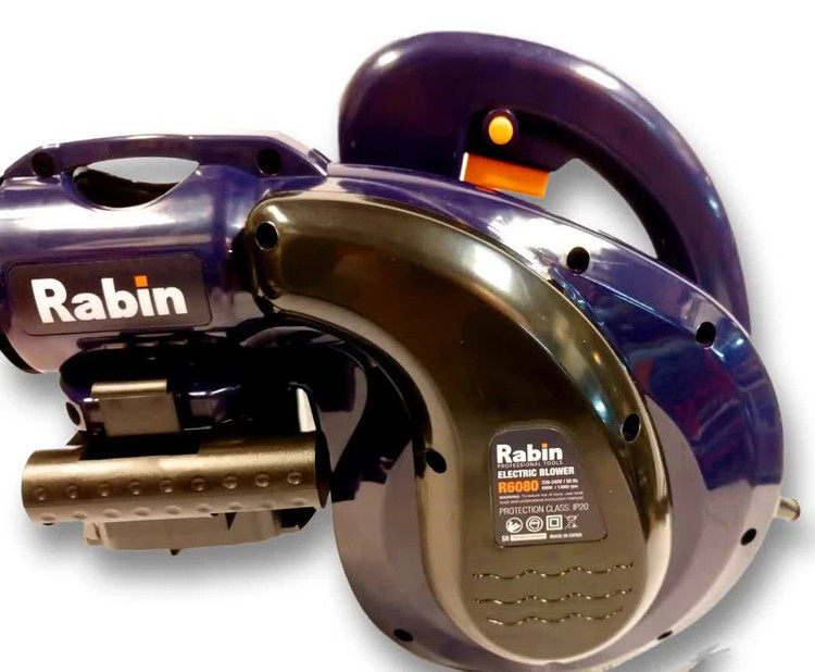 بلوور دمنده و مکنده خرطومی رابین دارای شلنگ خرطومی و دو عدد سری جهت مکش | 3000 تا 13000 دور گردش در دقیقه و دارای دیمر کنترل سرعت دمش و مکش | دارای موتور قدرتمند 800 وات واقعی | همراه کیسه جمع آوری گرد و خاک | دارای 12 ماه گارانتی شرکت رابین
