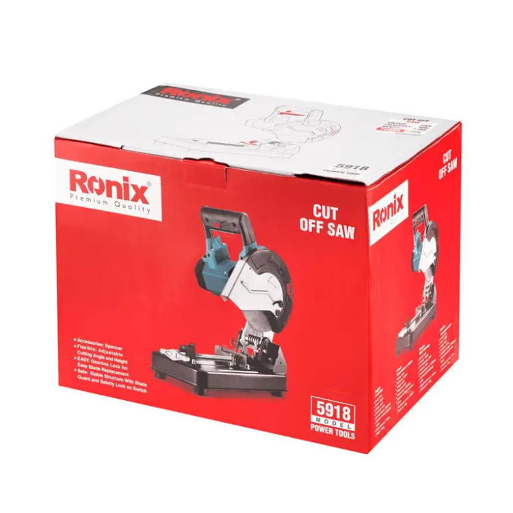 پروفیلبر 180 میلیمتری 1280 وات رونیکس مدل 5918 همراه با ذغال، آچار، رینگ و صفحه برش در جعبه رنگی رونیکس به بازار ابزار ایران عرضه میشود. در بخش توضیحات محصول، بیشتر با ویژگیهای این ابزار آشنا شوید.