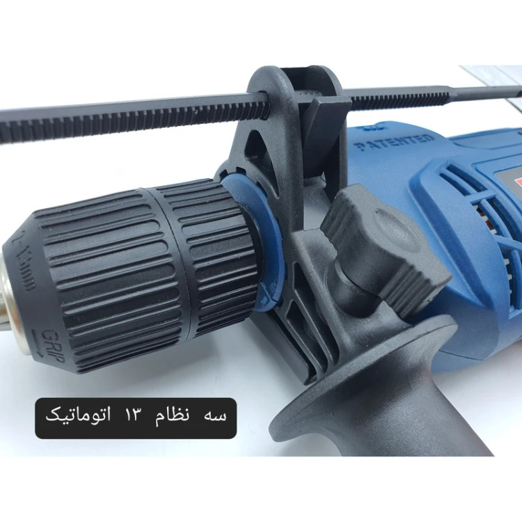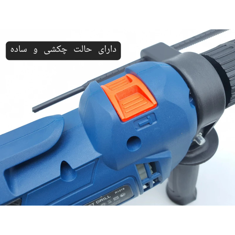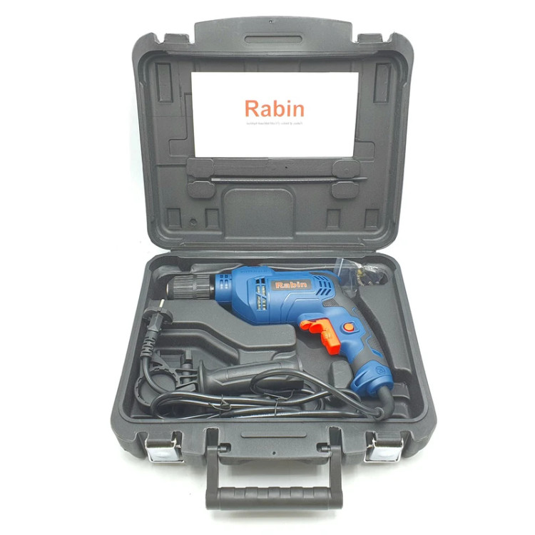 دریل فوق با توان 650 وات، دستگاهی میان رده محسوب میشود که برای انجام کارهای سبک تا نیمه سنگین مناسب است. این دریل برقی از قابلیت کنترل سرعت چرخش برخوردار بوده و بازهای برابر 0 تا 2800 دور بر دقیقه دارد. برای تنظیم سرعت چرخش دستگاه یک شستی دیمردار روی دریل تعبیه شده که کار با آن بسیار آسان است. سه نظام این دریل از نوع 13 میلیمتری اتوماتیک بوده و برای نصب مته روی آن نیاز به آچار ندارید. از دیگر ویژگیهای این محصول میتوان به قابلیت گردش آن بهصورت راستگرد و چپگرد اشاره کرد. از این دستگاه میتوان برای سوراخ کردن سطوح سیمانی و گچی نیز استفاده کرد که این ویژگی با توجه به قابلیت چکشی بودن دستگاه حاصل شده است. حداکثر قطر سوراخکاری این دریل چکشی در چوب، فلز و مصالح به ترتیب برابر 25، 13 و 10 میلیمتر است. این محصول را شرکت «رابین» تحت عنوان مدل (R1016) به بازار عرضه میکند.