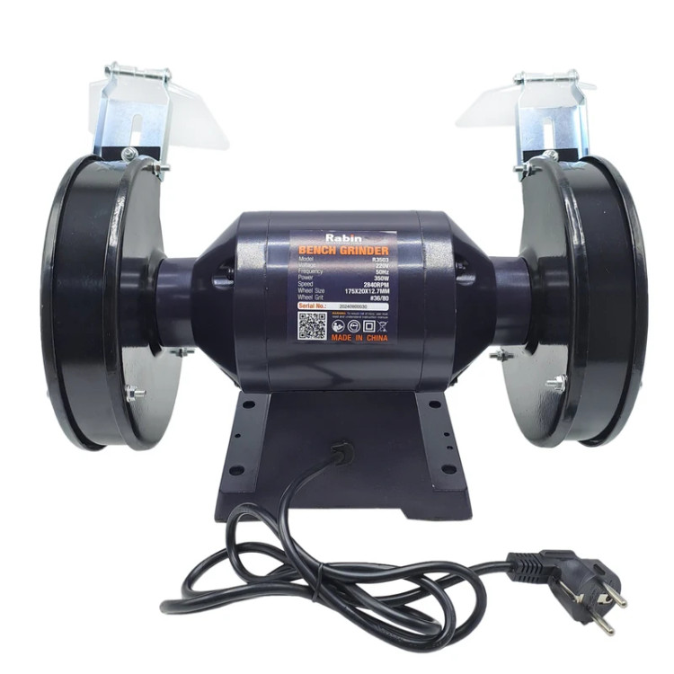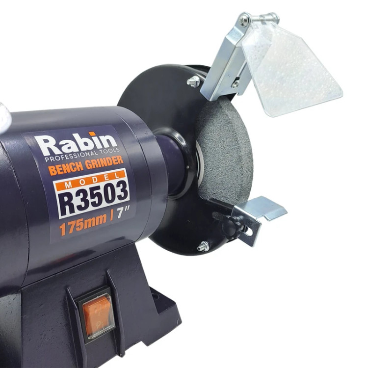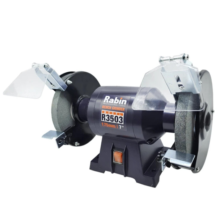 سنگ رومیزی رابین مدل R3503 چیست؟ سنگ رومیزی یک دستگاه اختصاصی برای انجام کارهای برقی و کارآمد برای انجام کارهای صنعتی و نیمه صنعتی در کارگاههاست. با استفاده از سنگ رومیزی فرایندهای صنعتی مثل سایش، شکل دهی و حتی تمیز کردن انواع قطعات سنگی در اندازههای مختلف انجام میشود.میتوان گفت که این دستگاه نوعی سنباده صنعتی است که با سرعت زیادی عمیات سنگ زنی و سنباده کاری اجسام سخت را انجام میدهد. بنابراین شرکتهایی که به پولیش و سنگ زنی احتیاج دارند برای افزایش سرعت کار خود از سنگ رومیزی استفاده میکنند. این دستگاه انواع مختلف در سایزهای مختلفی دارد که هر کدام از انواع آن برای انجام کار خاصی طراحی شده است. این دستگاه به وسیله انرژی الکتریکی انرژی مورد نیاز برای عملکرد موتور را فراهم میکند. با فعال شدن دستگاه سنگ رومیزی، موتور شروع به چرخش میکند و با تعداد دور بسیار بالا توسط انواع دیسکی که روی آن بسته میشود کار میکند؛ دیسکهایی که میچرخند برای سایش سنگ و کارهایی مثل برش، تراشکاری یا پولیش و پرداخت سطح سنگ مناسب میباشند. به طور کلی این دستگاه برای سایش سطوح مختلف به کار میرود .