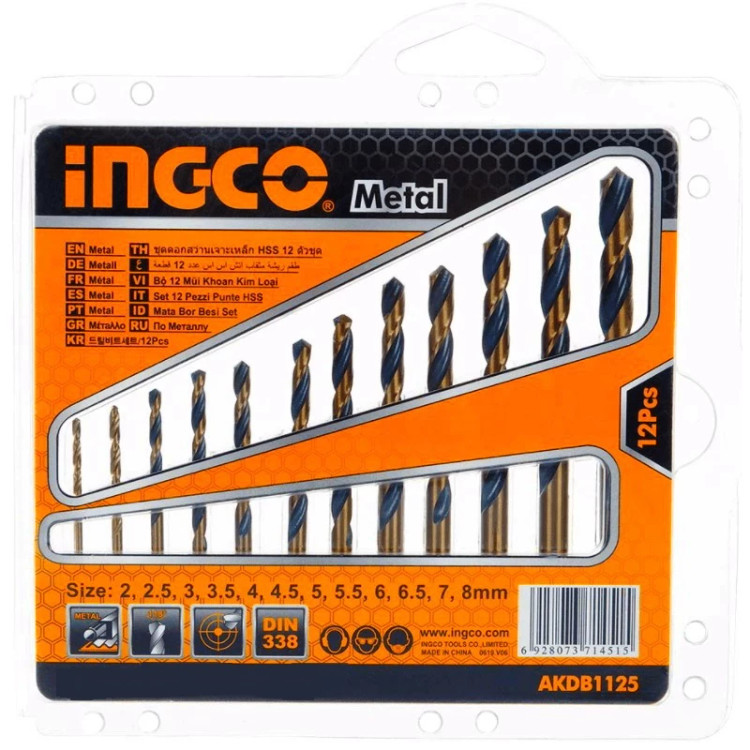 مجموعه 12 عددی مته آهن اینکو مدل AKDB1125 ساخته شده از ترکیب فولاد تندبر (HIGH SPEED STEEL) که مقاومت و استحکام بالایی در برابر ساییدگی خوردگی و حرارت دارد این محصول توسط کمپانی آمریکایی اینکو با رعایت استاندارد های جهانی تولید و به کشورهای جهان صادر شده است