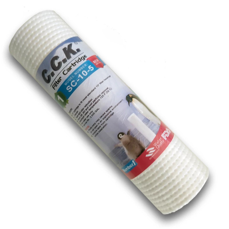 فیلتر مرحله اول تصفیه آب خانگی ، فیلتر پلی پروپیلن یا فیلتر 5 میکرون رسوب گیر نیز گفته میشود . فیلتر شماره یک از منافذی به قطر 5 پنج میکرون و از الیاف پلی پروپیلن تشکیل شده و در دستگاه تصفیه آب خانگی 6 مرحله ای به عنوان مرحله اول و در راه ورود آب به دستگاه تصفیه آب نصب میشود .