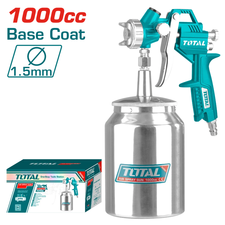 پیستوله بادی توتال مدل TAT11001 یک ابزار حرفهای برای پاشش یکنواخت رنگ است که مناسب استفاده در کارگاههای نقاشی، بدنه خودرو و پروژههای صنعتی میباشد. این مدل با مخزن 1000 سیسی و نازل استاندارد 1.5 میلیمتری عرضه میشود و قابلیت نصب نازلهای 1.2 تا 1.8 میلیمتر را نیز دارد.